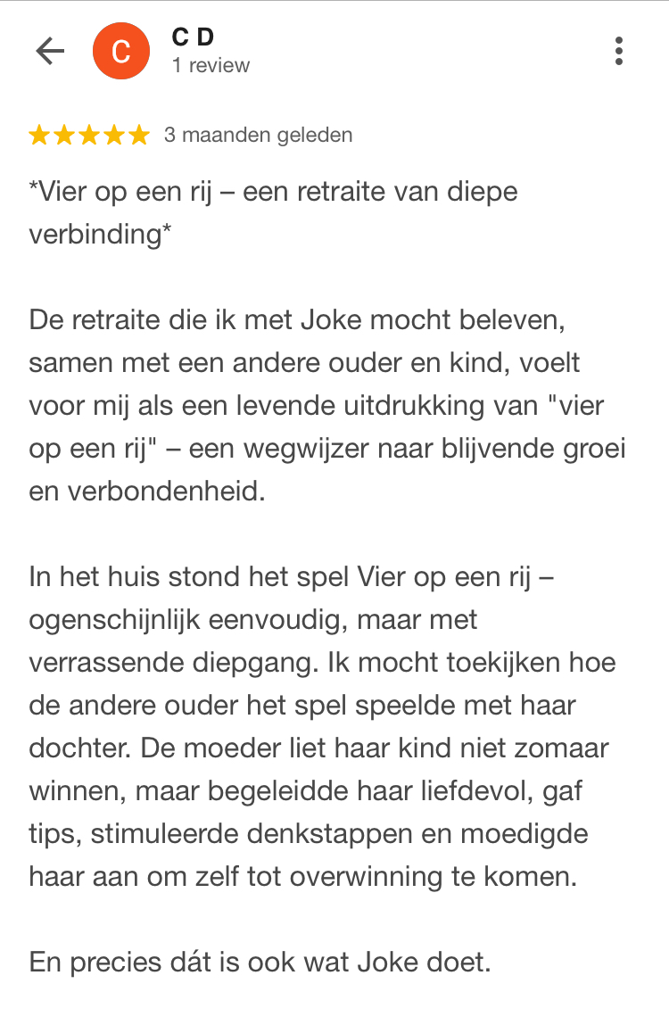 positieve review over de ouder kind retraite